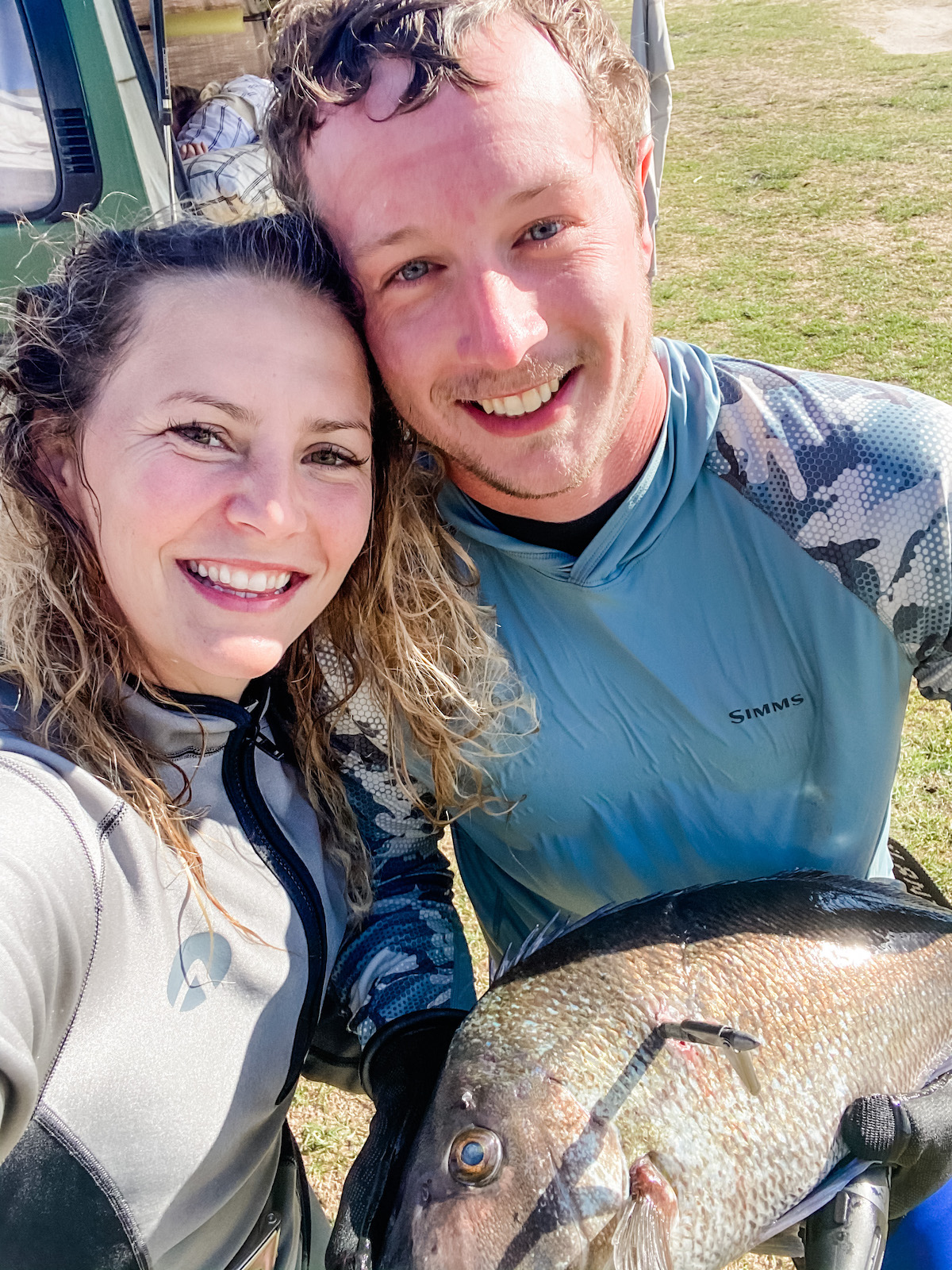 Our short walk from the campsite to the fishing pier was beautiful. We passed by kayaks parked on the sand and the beach was already coming alive with fisherpeople and couples walking their dogs in the sand.