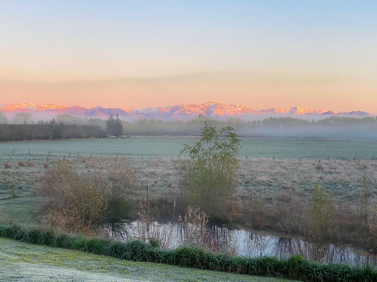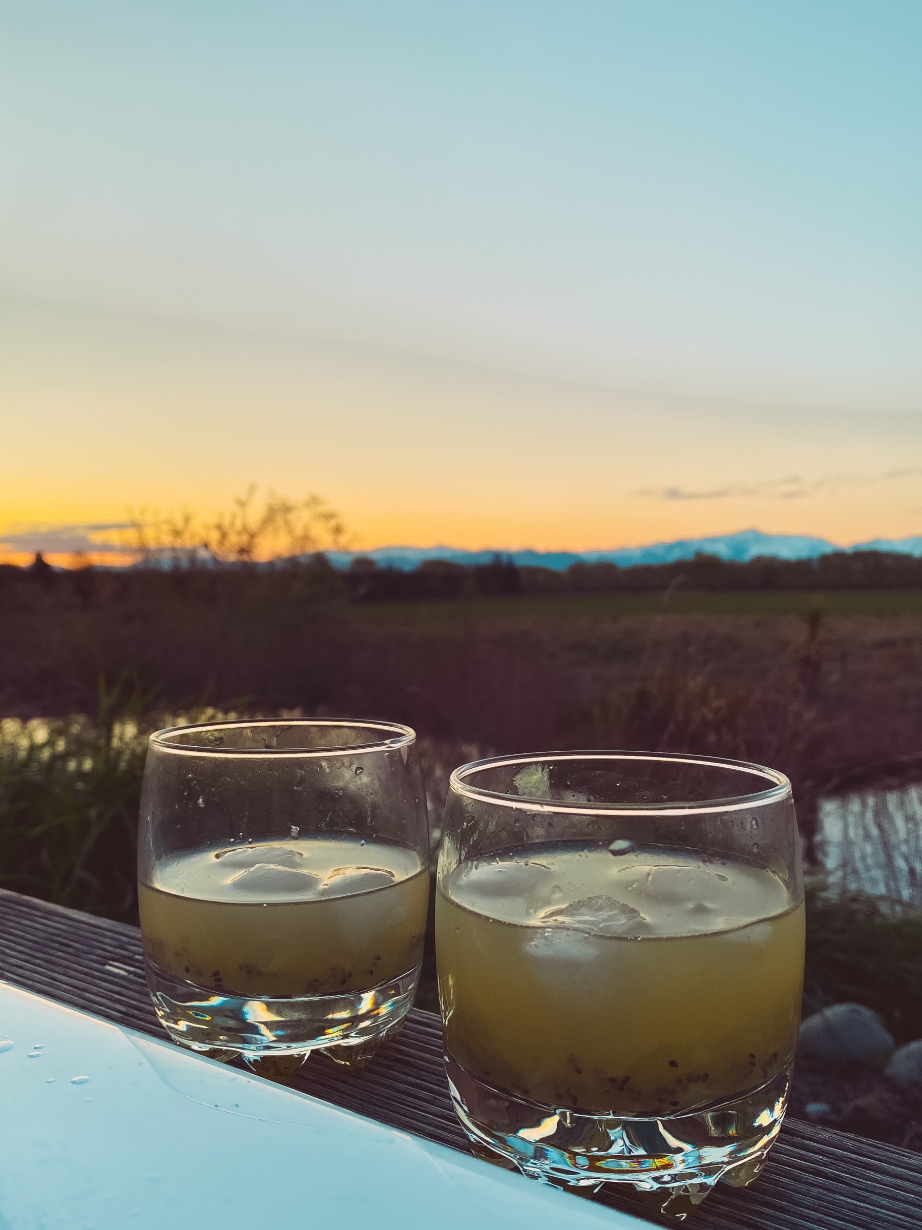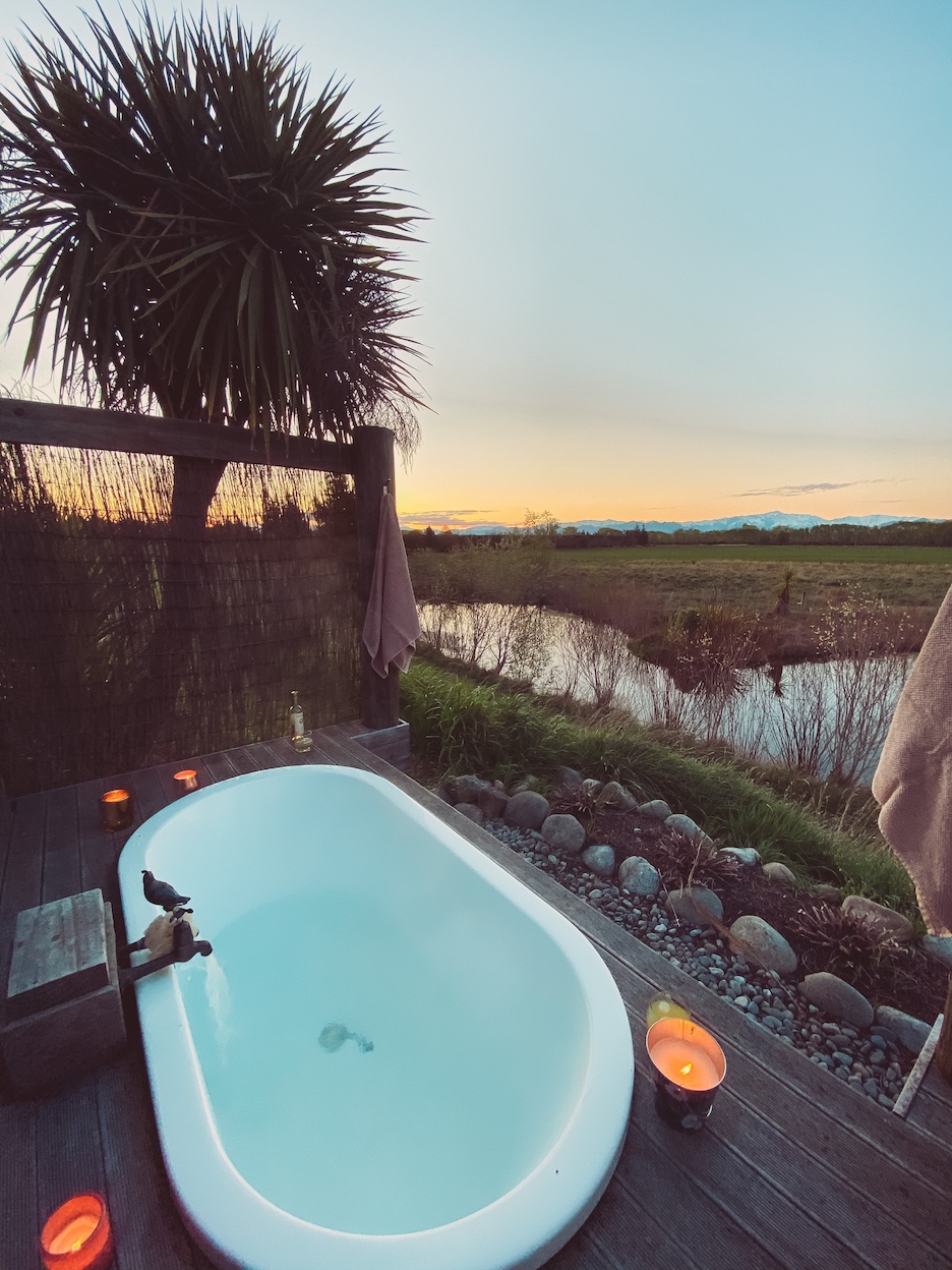Complete with an outdoor bathtub that overlooks a frog filled pond, cotton candy colored skies, and the northern most tip of the Southern alps on the horizon line, this was our oasis from the storm. The weather was erratic, going from hailing, to snowing, to blistering hot all within an hour of each other. We woke up to snow on the mountains one morning and ended the day with sunset margaritas in the bath.
