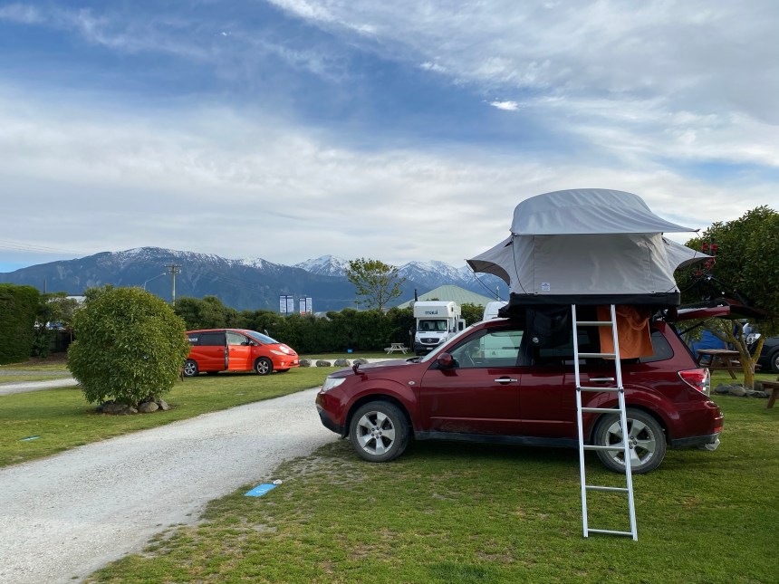 After resetting our batteries for 3 days, we repacked the car and headed north to make our way to Kaikoura, stopping first at The Cathedrals Outlook, a couple beaches along the way to play with crabs and spy on seals. After setting up camp with a mountain view we made a stop at the Kaikoura bakery to treat ourselves after a day in the car.