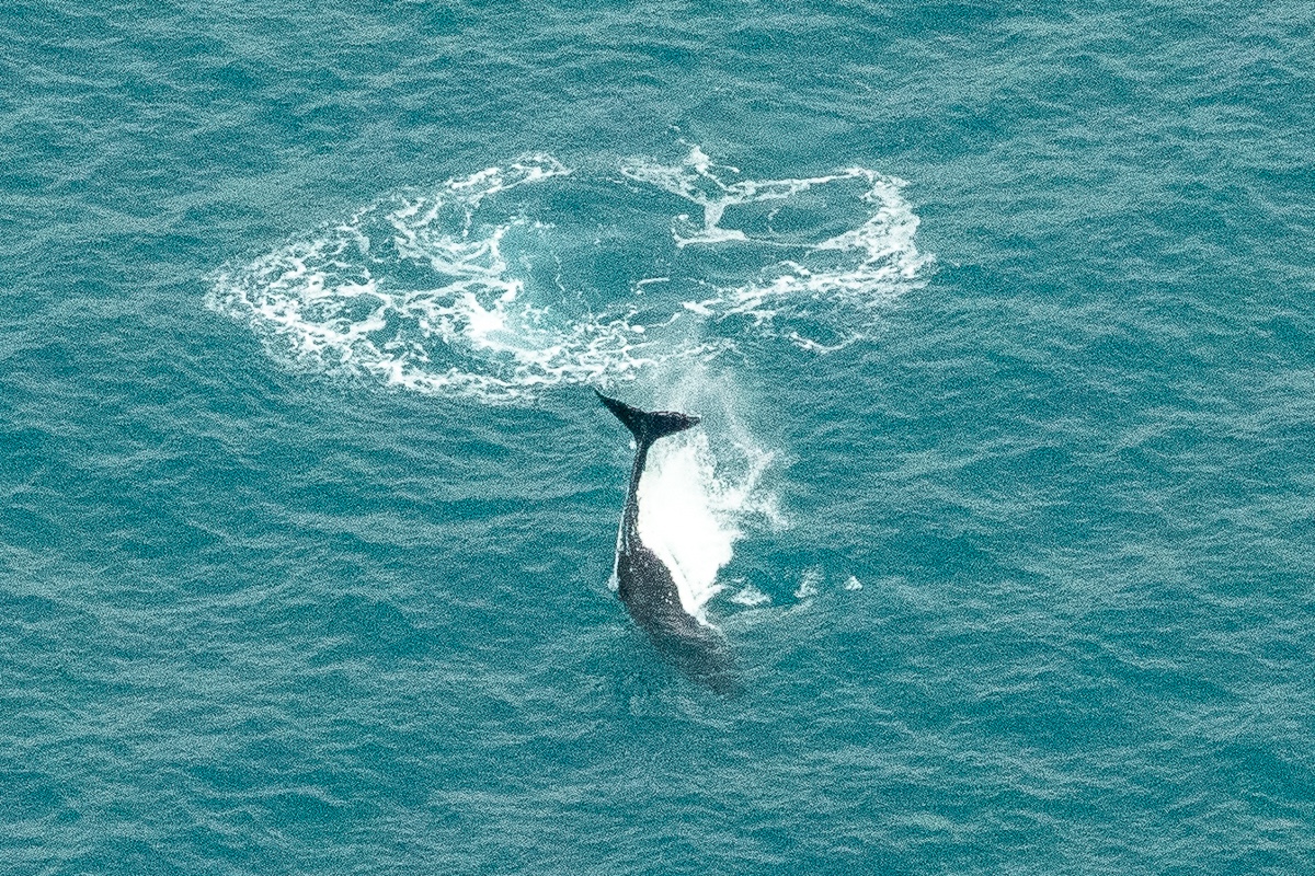 A couple at our campsite had their tour cancelled the day before ours because there were no whales in the area – but as luck has been our companion in New Zealand – our flight was a go. A young humpback whale was spotted just north of our airstrip. We hopped in our 4 person puddle jumper and took off for where the whale was spotted. All the companies in the area collaborate on the radios with one another – which I think is awesome – so we had a beacon in the water to know where to look.