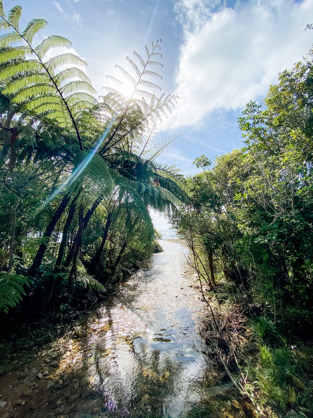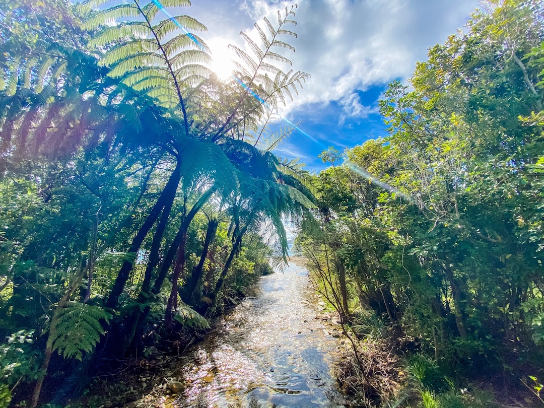 As per usual, the winds were ripping and it was a cold and beautiful day for the trail. We were section hiking the Ship Cove to Furneaux Lodge, a 15km section through jungle and coastline. Most of the time warranted hiking in my puffy jacket, but whenever the winds stopped and the sun was directly on us, it was hot! Weather in New Zealand really boggles my mind, and anytime we hike I’m prepared for all weather. It’s always good backpacking prep, so I don’t mind the extra weight.
