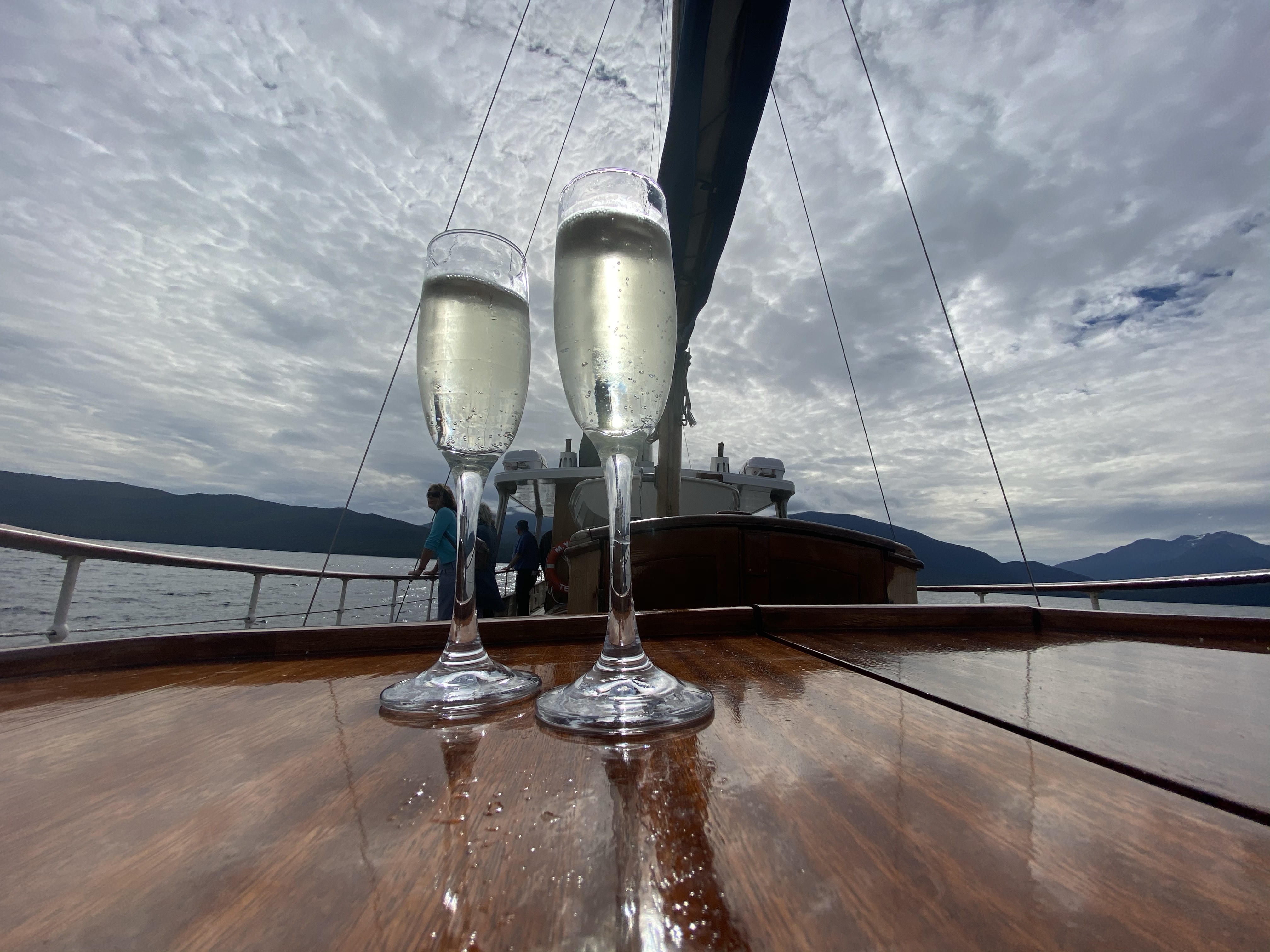 Our second day was spent packing for our upcoming cruise, followed by an evening on the Faith in Fjordland ship, a 1930’s vessel that has been restored for tourism. Our Airbnb host was one of the captains of the ship and invited us onboard for an evening of champagne and sailing around Lake Te Anau. Our glasses were never empty and we truly felt like special guests being treated to a private charter.